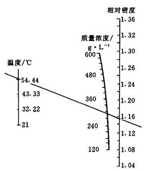 图7-6 NaNO3温度、质量浓度、相对密度换算表