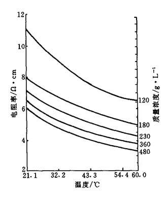 图7-9 NaNO3电阻率与温度、质量浓度的关系