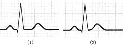 图139 血钙浓度与心电图变化的关系 (1)血钙正常;(2)血钙浓度降低