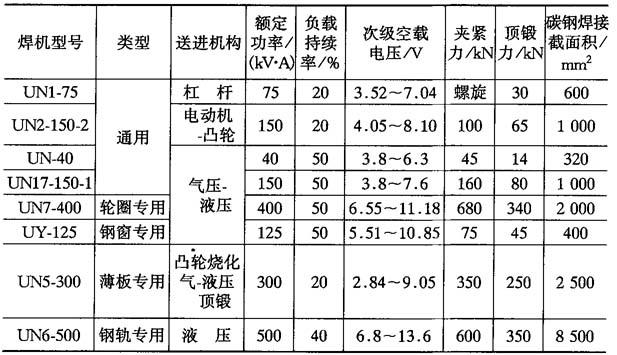 表9-31 典型闪光对焊机主要技术参数