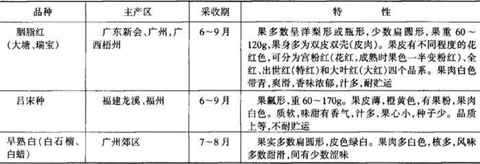 | 释义 | 番石榴 番石榴(Guava)别名黄肚子、鸡矢果、拔子、胶子果等。番石榴树是桃金娘科番石榴属的常绿灌木或小乔木。 果实洋梨形,一般长5~7cm,直径5~12cm。小果重20g,大果重达400g。,成熟时果皮为黄色或黄绿色,有时红色。果肉分为白、绿、黄、淡红和红色。成熟时果肉柔软,含有石细胞,有特殊香气。种子多数,肾形、扁平。收获期9~11月。夏威夷二次收获期为10月至翌年4月。 番石榴原产地为墨西哥到秘鲁的热带美洲。其果形与组织类似石榴。番石榴广泛分布在热带和亚热带地区,主要产地有西印度群岛、印度、墨西哥、南非、埃及、巴西、菲律宾以及美国的夏威夷和佛罗里达。 番石榴可以鲜食,可以加工果汁、果酱及果冻。加工应选用新鲜、八成熟左右、风味正常的果实。由于番石榴的果皮既薄又软,不耐贮运,因此采收后应迅速加工,加工原料最好采用冷藏。如果远途运输,可在番石榴尚未十分成熟时采收,并在温度4~10℃和相对湿度85%~90%条件下贮藏。 我国番石榴主要产区有台湾、广东、广西、福建、云南、四川、江西和贵州等省区,或已普遍栽培或为野生果树。 由于番石榴长期采用实生繁殖,果实大小、形状、色泽、品质和维生素等营养成分变化较大。果实有的香甜软滑可口,有的粗硬酸涩,或有不良气味。 我国番石榴主栽品种有广东的胭脂红、早熟白、宫粉红、七月红;福建的台湾、吕宋、小溪、白秀、十月等。适合做果汁的主要品种及其特性见表1-2-27。 表1-2-27 番石榴主要品种及其特性