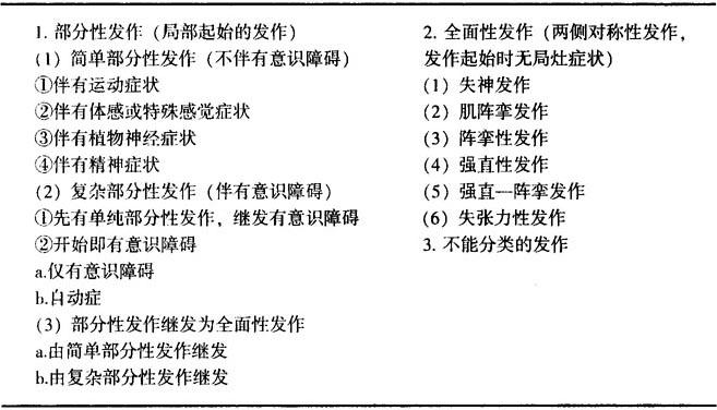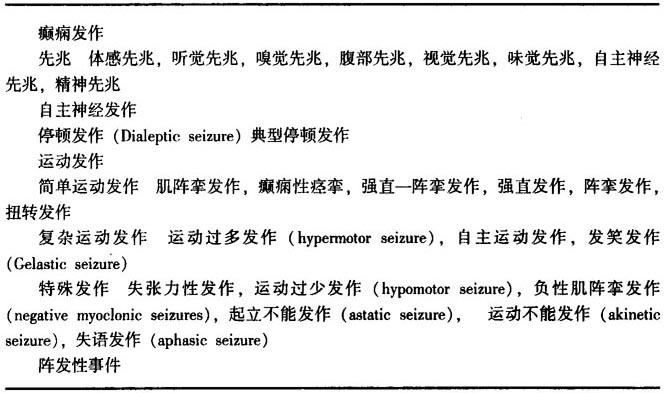 近年,也有人提出按症状学来进行分类,见表13-5。痫性发作的症状学分类仅仅是根据痫性发作症状学来分类的一种方法,它的优点是:提供了症状学,能够清楚地确定发作期症状表现,不依赖于任何其他的检测结果;弄清了痫性发作分类和癫痫综合征分类之间的差别,许多癫痫综合征可能伴有同一种类型的痫性发作;痫性发作的症状学分类使观察者的注意力集中到临床的证候学上。 表13-5 痫性发作的症状学分类