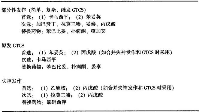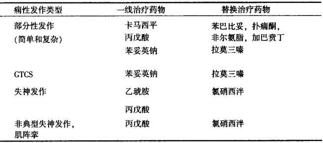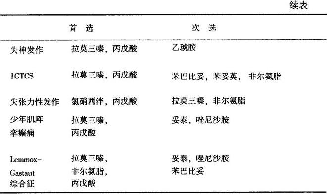 表13-10 痫性发作或癫痫类型的药物选择(之三)