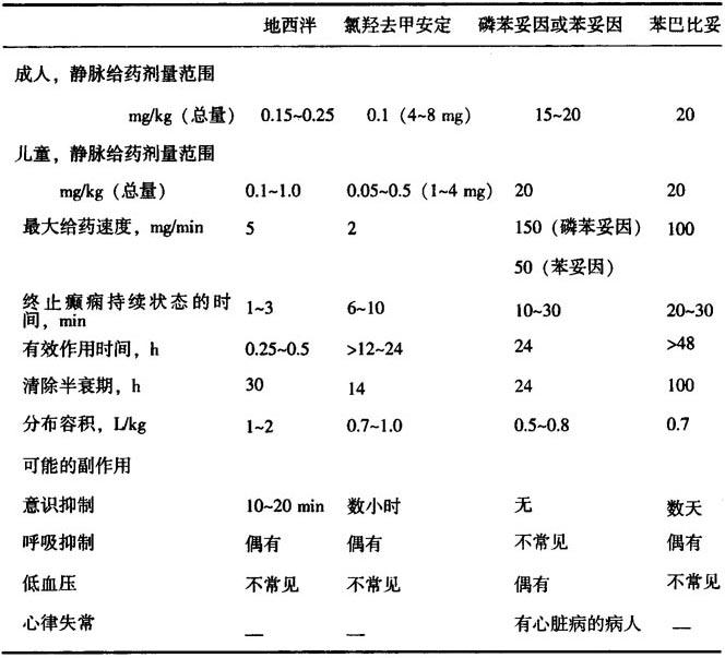 表13-12 用于治疗癫痫持续状态的主要药物:静脉给药剂量、药代动力学和主要毒性作用