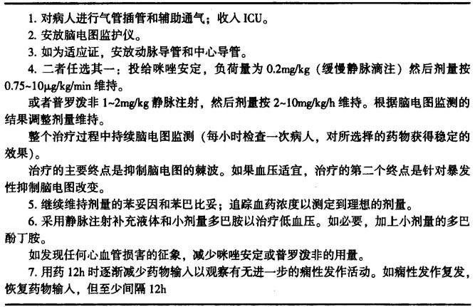表13-13 难治性癫痫持续状态采用咪唑安定或普罗泼非的治疗草案