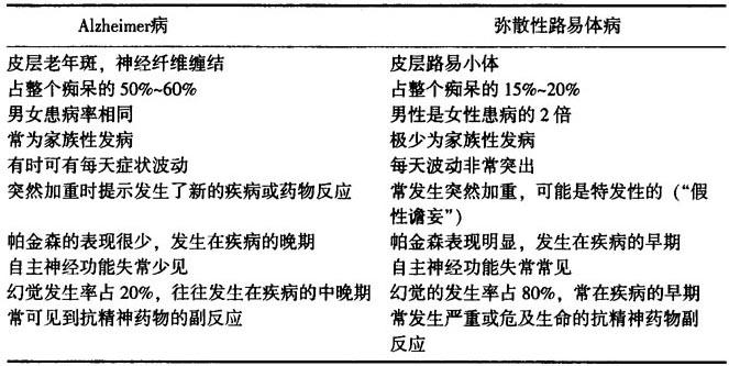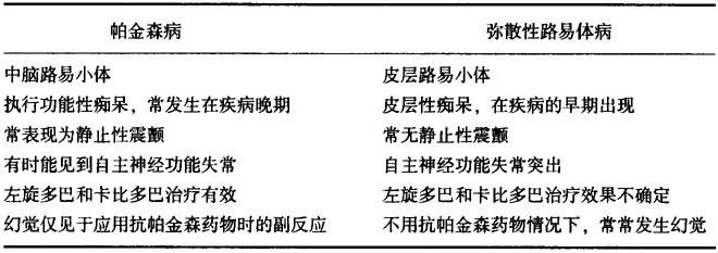 表2-5 帕金森病与弥散性路易体病特征的比较