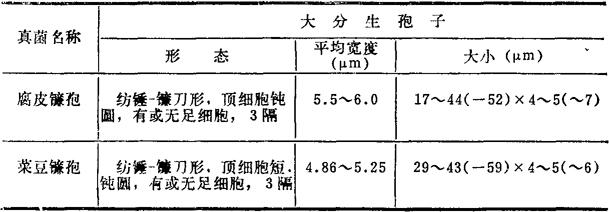 (2)薄层层析 上述提取物用硅胶G板层析,以三氯甲烷-丙酮(3∶2v/v)展开,其Rf值为0.68,层析板用10%硫酸-甲醇处理,110℃加热10min,毒素呈灰紫色斑、紫外线下呈蓝色荧光。 3.鉴别诊断 本菌同大孢半裸镰孢(Fusarium semitectum var majus)、同色镰孢(Fusarium concolor)和蛇形镰孢(Fusarium anguioides)区别如表21-4。 五、腐皮镰孢(Fusarium solani) 本菌寄生在许多栽培作物及蔬菜上,引起根腐及茎基腐。产生7种毒素,新茄病镰孢烯醇(Neosolaniol)、T-2毒素,二醋酸基藨草镰孢烯醇、镰孢烯酮-x、二醋酸基雪腐镰孢烯醇(Nivalenol diacetate)、丁烯酸内酯和F-2毒素。本菌寄生甘薯后,应激甘薯产生甘薯黑疤二酮(Ipomeanine)等8种有毒物质,引起牛肺水肿、充血和肾慢性中毒。新茄病镰孢烯醇引起马属动物神经症状。 1.真菌检查 (1)分离 见拟分支孢镰孢。 (2)形态特性。 培养性状,气生菌丝棉絮状、低平或蛛丝状,白色、苍白淡紫色、苍白浅赭色、苍白浅黄色、背面浅赭色、浅赭暗蓝色、浅奶油黄色。气生菌丝的粘孢子团呈白、褐、黄、蓝、绿色或它们相间颜色。 镜检特性,厚垣孢子顶生或间生,单孢或双孢,少数菌株呈短链或结节状,光滑或具疣状突起,淡黄赭色或无色、圆形或椭圆形。小分生孢子,假头状着生,椭圆形、卵圆形、长椭圆形、短腊肠形、逗点形,0~1隔,4~15×3~5μm。大分生孢子近镰刀形,纺锤-镰刀形、纺锤-披针形、纺锤-柱形,略弯曲,很大距离的长度上直径相等,顶细胞短,略窄细或变钝,足细胞有或无,壁厚,典型3隔。其大小为:3隔17~44×4~5μm,4~5隔35~55×4.5~5.5μm。6~7隔45~65×5~6.5μm。 2.毒素检测(甘薯黑疤二酮) 用乙醚提取,以硅胶IB-F板点样,在苯-甲醇(9∶1v/v)展开剂中展开,然后用艾氏(Ehrlich′s)试剂处理,微热风吹干检查。 新茄病镰孢烯醇的检测方法如下。 (1)提取 饲料加2倍正己烷过夜除去杂质,过滤后残渣加5倍剂量三氯甲烷提取3次,混合3次提取液浓缩至干备用。 (2)薄层层析 上述浓缩至干的提取样品加少量三氯甲烷溶解,点样在硅胶G板上,以丙酮-正己烷(1∶1v/v)展开剂,Rf值为0.5。样点用20%硫酸处理,110℃加热10min,在365nm紫外线下毒素呈蓝绿色荧光斑点。 3.鉴别诊断 本菌同菜豆镰孢(Fusariam martii var.phascoli)区别如表21-5。 表21-5 腐皮镰孢与菜豆镰孢的鉴别