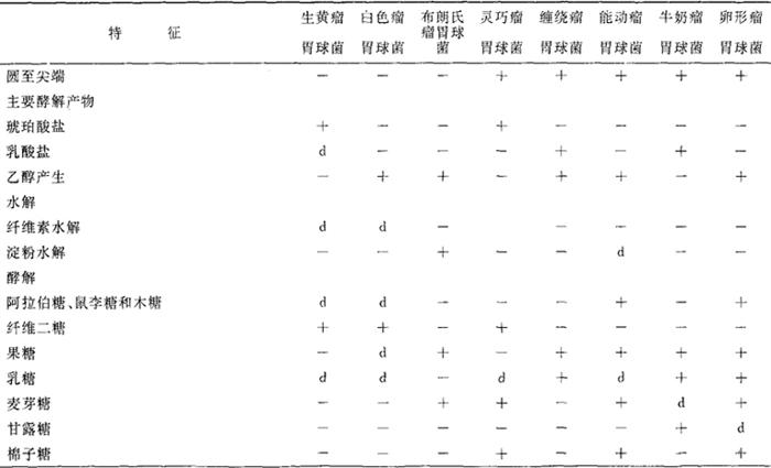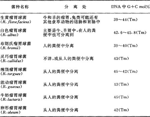 瘤胃球菌主要菌种的鉴定要点列于表6-7中。 表6-7 瘤胃球菌菌种鉴定要点