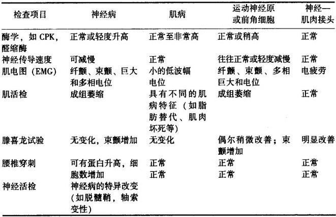 五、病理生理 1.上运动神经原瘫痪 锥体系包括皮质脊髓束和皮质脑干束,源自额叶4、8、6区和顶叶3-1-2、5、7区皮质,在皮质下白质内组成放射冠,经内囊后肢下行。皮质脑干束进入脑干网状结构,与脑干各脑神经运动核团发生突触。皮质脊髓束在脊髓于α运动神经原发生直接突触,或经脊髓中间神经原间接作用于α运动神经原,支配相应的随意肌,执行技巧动作,并对运动速度和敏捷程度参与调节。皮质脊髓束和皮质脑干束受损,出现的有关随意肌的瘫痪称为上运动神经原瘫痪。 2.下运动神经原瘫痪 下运动神经原指脊髓前角和脑干脑神经运动核团内的运动神经原。一个α运动神经原通过其轴索支配若干条肌纤维,合成一个运动单位。大α细胞主要与白肌纤维联系,组成快速运动单位,主要与随意运动有关。小α细胞主要与红肌纤维联系,组成缓慢运动单位,主要与维持肌张力和调整姿势有关。α神经原的活动,既受节段装置的影响,又受脊髓上运动神经原的调节与控制。脊髓前角细胞和脑干脑神经运动核团受损,出现的有关随意肌的瘫痪称为下运动神经原瘫痪。 3.肌源性瘫痪 指肌纤维本身病变影响肌肉收缩而引起的瘫痪。如重症肌无力,为神经肌肉连接点的突触后膜上烟碱型乙酰胆碱受体变性、破坏,敏感性降低,导致病变肌肉易于疲劳。周期性瘫痪,与肌膜功能失调有关。肌营养不良、多发性肌炎、先天性疾病、代谢性疾病为肌纤维本身全面性病变引起。 六、临床表现 1.上运动神经原瘫痪 (1)瘫痪的分布符合神经解剖规律,呈肌群或肢体瘫痪,可表现为单肢瘫、偏瘫、交叉性瘫痪、截瘫和四肢瘫。 (2)肌肉萎缩不明显,上运动神经原病变不直接损伤肌肉,也不影响下运动神经原对肌肉的营养,所以瘫痪的肌肉常无萎缩。但长期上运动神经原瘫痪可引起废用性的萎缩;顶叶病变可引起病变对侧轻度萎缩。 (3)瘫痪肌肉无肌肥大。 (4)无肌束颤动。 (5)牵张反射增强,表现为肌张力增高和腱反射亢进。肌张力增高在上肢以屈肌为主,下肢以伸肌为主,呈“折刀样”。具体表现为上肢靠近躯干,放置胸前,肘关节屈曲、旋前,腕、指关节也处于屈曲位;下肢髋、膝关节伸直、内收,踝关节跖屈,足掌内转,如能行走,呈画圈步态。因此,上运动神经原瘫痪也称为痉挛性瘫痪。 (6)浅反射减退或消失。 (7)病理反射阳性,锥体系抑制原始的屈曲回缩反射。锥体系病变时,屈曲回缩反射因失去抑制而过分活跃,在上肢可出现Hoffmann征,在下肢可出现Babinski征。 (8)感觉障碍,可能合并传导束或皮质型感觉障碍。 (9)实验室检查:血肌酶正常,肌电图无阳性征象,肌肉活检可见废用性萎缩征象。 2.下运动神经原瘫痪 (1)瘫痪的分布符合神经解剖规律,呈小组肌肉或单个肌肉的瘫痪,瘫痪肌肉的分布附和脊髓节段性、神经丛、神经干性或周围神经支配。 (2)瘫痪肌肉常有萎缩,下运动神经原病对其所支配的随意肌有营养作用,肌肉失神经后,蛋白质合成率降低,分解率加快,逐渐导致瘫痪肌肉萎缩。 (3)瘫痪肌肉无肌肥大。 (4)常有肌纤维颤动和束颤,表现为皮下肌肉的细快颤动,也可扪诊感知。在疲劳、叩击病肌后,束颤加重。束颤是下运动神经原瘫痪的特征性表现,常见于下运动神经原变性疾病,如运动神经原病、延髓或脊髓空洞症等;也可见于前根和周围神经病变。 (5)牵张反射减退,下运动神经原病变阻断了牵张反射弧,故瘫痪肌肉的肌张力减低,腱反射减退或消失。因此,下运动神经原瘫痪亦被称为弛缓性瘫痪或软瘫。 (6)病理反射阴性。 (7)可有感觉和植物神经功能障碍。 (8)实验室检查:血肌酶大多正常,肌电图呈失神经性改变,肌肉活检呈失神经性改变。 3.肌源性瘫痪 (1)瘫痪的分布不符合神经解剖规律,呈局限性肌肉或全身性肌肉分布。局限瘫痪可限于眼肌、肢带肌、面肩肱肌和眼咽肌等,全身性瘫痪可波及全身随意肌。 (2)瘫痪肌肉可有萎缩。 (3)瘫痪肌肉可有肌肉肥大,指病变肌肉的肌腹异常肥大,扪诊时有坚韧感,但肌力却相对减低。多见于肌营养不良症。 (4)通常没有肌束颤动。 (5)牵张反射减退,由于运动效应器即随意肌受损,导致肌张力减低,腱反射减退或消失。 (6)病理反射阴性。 (7)没有感觉障碍。 (8)实验室检查:血肌酶多升高,肌电图呈肌病性改变,肌肉活检呈特征性肌病性改变。还可有一些相应疾病的特征性改变,如重症肌无力时,血抗AchR抗体增加。 七、诊断和鉴别诊断 1.鉴别是否为真性瘫痪 临床上为了确定真性瘫痪,需要与失用、骨关节病变引起的随意运动障碍和癔症性瘫痪等相鉴别。失用是由于大脑优势半球特定功能部位的病变,影响了获得性技能回忆能力所致;随意肌没有瘫痪,但运用不能。骨关节病变可使随意运动受限,但不属于真性瘫痪,可通过骨关节病史、骨科相关查体以及缺乏神经系统阳性体征相鉴别。癔症性瘫痪好发于年轻女性,常有明显的精神刺激等诱因,起病较快,瘫痪的类型以单瘫或截瘫较为常见,程度时轻时重,与神经解剖规律不相符,无神经系统其他阳性体征。病人具有暗示性或含情感色彩丰富的精神症状。结合癔症性格及以往类似发作病史,有助于诊断。但必须注意首先应排除器质性疾病引起的瘫痪。锥体外系疾病(如小脑病变),可有病侧肌力轻度减退,但以小脑性共济失调为主。帕金森病病人行动减少,运动弛缓,表情呆板,瞬目减少,肢体可轻度软弱,但无明显瘫痪。