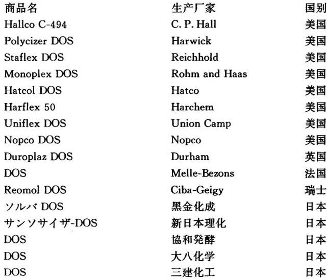 用途 本品为一优良的耐寒增塑剂,主要用于聚氯乙烯、氯乙烯共聚物、硝酸纤维素、乙基纤维素及合成橡胶等。本品增塑效率高,挥发性低,既具有优良的耐寒性,又有较好的耐热性、耐光性和电绝缘性,特别适用于制做耐寒电线和电缆料、人造革、薄膜、板材、片材等制品。但本品迁移性较大,易被烃类溶剂抽出,耐水性也不太理想(但比DBS好),因此,常与邻苯二甲酸酯类并用。本品还可作为多种合成橡胶的低温用增塑剂,对橡胶的硫化无影响。 毒性 本品毒性系数T=1000。以200mg/kg体重的剂量掺混到饲料中,喂饲大白鼠19个月,未见任何致毒作用,亦无致癌性。 美国(参见FDA121.2500,121.2531)、法国、日本、意大利、德国和英国允许本品用于食品包装材料中。 国内生产厂 吉林市石井沟联合化工厂 上海溶剂厂 北京化工三厂 天津中河化工厂 沈阳新城化工厂 邯郸市化工厂 重庆朝阳化工厂 天津溶剂厂 南宁有机化工厂 哈尔滨化工四厂 本溪有机化工厂 开封化工三厂 陕西省兴平县油漆厂 潍坊化工二厂 江苏省吴县化工五厂 天门树脂厂 佛山溶剂厂 益阳市油脂化工厂 通辽油脂化工厂 国外生产厂