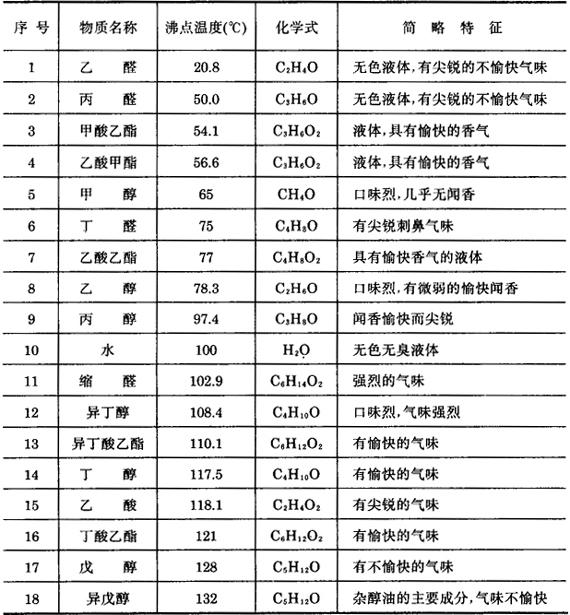 表5-3-2所列的各种挥发性成分,在蒸馏的过程中转入馏出液。这些成分对形成白兰地特有的口味和香味具有重要的作用。 为了控制挥发性成分在白兰地蒸馏过程中的转移情况,搞清楚蒸发系数和蒸馏系数的含意是非常必要的。 如果酒精在蒸气中的含量用Ya表示,酒精在液体中的含量用Xa表示,那么酒精的蒸发系数Ka可表示为: 同样,如果某种混合物在蒸气中的含量用Yn表示,该混合物在液体中的含量用Xn表示,那么该混合物的蒸发系数Kn可表示为: 蒸发系数指明了在简单蒸馏的情况下,酒精或混合物的加强程度。对酒精来说,蒸发系数又叫加强系数。酒精及混合物的蒸发系数,均随着液相中乙醇含量的提高而降低。 酒精及某些混合物的蒸发系数列入表5-3-3。 表5-3-3 酒精及某些混合物的蒸发系数