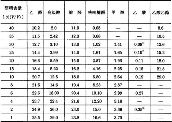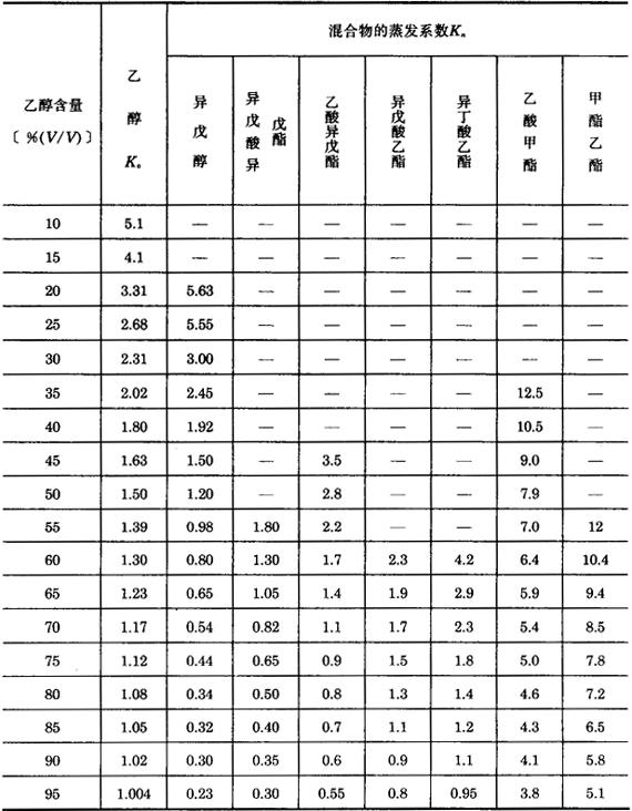 在酒精含量低的情况下,原白兰地中某些混合物的蒸发系数Kn引入表5-3-4。 表5-3-4 某些混合物的蒸发系数Kn