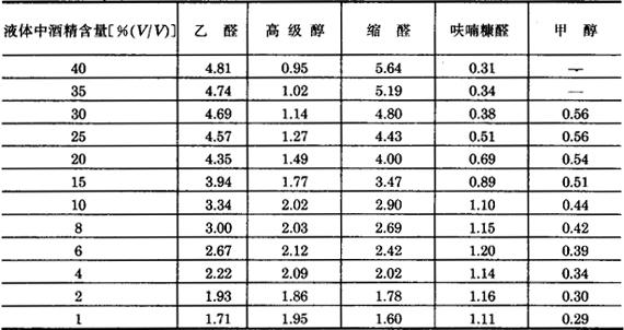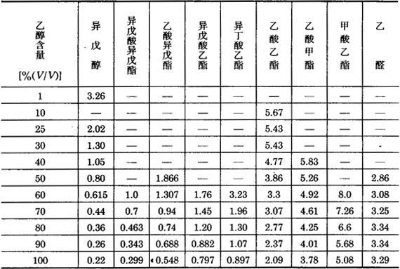表5-3-6 原白兰地中某些混合物的蒸馏系数K′