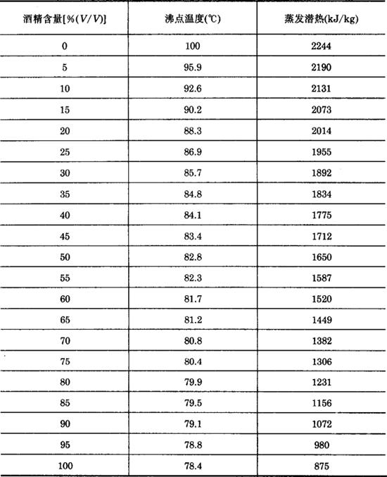 酒精水溶液的沸点温度和蒸发潜热列入表5-3-7。 表5-3-7 酒精水溶液的沸点温度和蒸发潜热