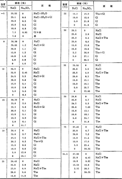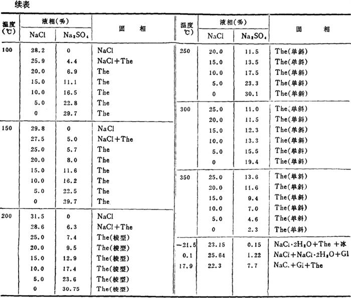 图6-4-16 Na+//Cl-,SO42--H2O体系的多温投影图 表6-4-17Na+//Cl-,SO42--H2O体系相平衡数据