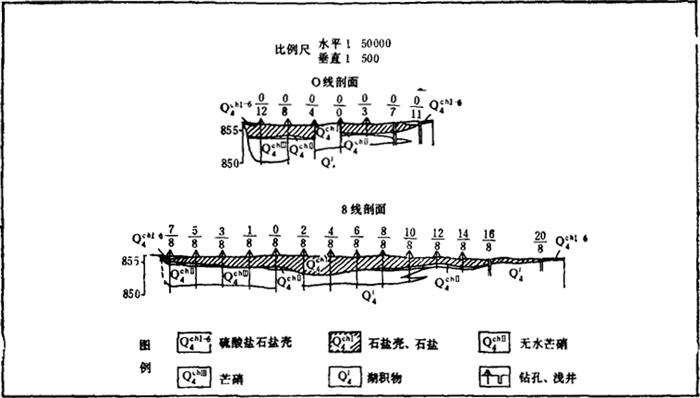 图4-1-22 七角井东盐湖O线、8线地质剖面图