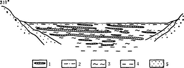 图4-1-23 查干淖尔碱湖沉积剖面图 1-天然碱层 2-粉砂粘土层 3-含碱淤泥层 4-粘土层 5-砂岩 盐湖矿床盐层沉积结构,一般分为沉积盖层、新盐沉积和老盐(盐根)沉积三种。沉积盖层是指表层盐上的沉积物,其组成可分两类:一是含泥砂、盐类的盐壳,如吉兰太盐湖的表层盐壳和察尔汗盐湖老盐壳;二是碎屑沉积物,为河湖相粉砂粘土沉积,如查干诺尔碱湖的沉积物;或者是风砂沉积,如雅布赖盐湖表层沉积物。新盐沉积是指沉积盖层下面的盐层,如吉兰太盐湖的白色粒状石盐层。老盐沉积是指底部的盐类沉积,如雅布赖盐湖底层的芒硝沉积。 (三)盐湖矿床的可变性 盐湖矿床资源不同于其他矿产资源,可因自然条件影响而发生明显变化: 1.固液相转化 盐湖矿床受地表水、地下水和大气降水的溶浸,可使已经沉积的固体盐层化成卤水;盐湖卤水在蒸发作用影响下,又可逐渐浓缩析盐。盐湖矿床这种固液相转化的原理在湖盐生产中得到广泛应用。例如内蒙古的碱湖利用盐溶作用,使泥沙沉淀,碱液得到富集;内蒙古的额吉淖尔、新疆的七角井盐湖利用盐田滩晒,获得新盐沉积等。 2.盐溶、泥垄、泥柱。 (1)盐溶 分溶蚀、溶陷和盐溶洞(或盐溶塘)。 溶蚀 分上部盐层溶蚀和盐层下部溶蚀。上部盐层溶蚀是降水造成的,多发生在干盐湖的表面,如青海昆特依盐湖表面老盐壳的溶蚀现象。盐层下部的溶蚀,是湖下淡卤承压上升造成的,如青海大柴旦盐湖盐层的溶蚀。 溶陷 盐层下部淡卤上升造成盐层大面积的塌陷现象。如新疆艾丁湖芒硝矿表层的溶陷。 盐溶洞 湖下淡水或泉水沿一定孔道上升,使盐体溶蚀。分明洞和暗洞,如内蒙古额吉淖尔盐湖矿床既有明洞,也有暗洞。 (2)泥垄和泥柱 盐湖矿床盐类沉积过程中或沉积后的一种地质现象。物质组成主要是细碎屑沉积物,如泥砂质等,并含有盐类晶体。新疆七角井盐湖和达板城盐湖均有分布。 |