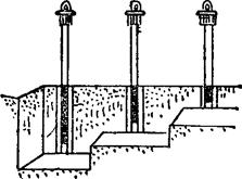 图6-6 埋设地温表的沟槽 观测温度时,应将管芯木棒迅速抽出,温度计球部因有铜屑包围,在30-40s内的变化不会超过0.1℃,这个时间内读取数值是完全足够的,通常在每天10时观测一次,读数即为该天的日平均土温。 胶木管内如果发现积水,可用竹棍缚上布片予以擦拭。 |