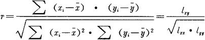 式中 lxx——x的离差平方和,即 lyy——y的离差平方和,即 lxy——x的离差与y的离差之积,即 在通常计算时,往往采用较方便、计算误差较小的计算公式: