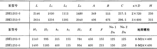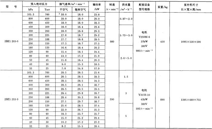 2BE、203及2BE、253型水环式真空泵见表9-9-25所示。 表9-9-252BE(水环泵性能表)