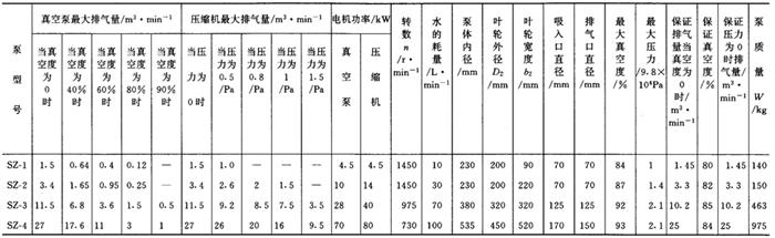SZ型水环式真空泵见表9-9-26所示。 表9-9-26SZ水环泵性能表
