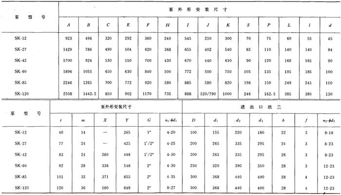 生产厂:新乡水泵厂。 表9-9-28SK系列泵型号和安装尺寸表 单位:mm