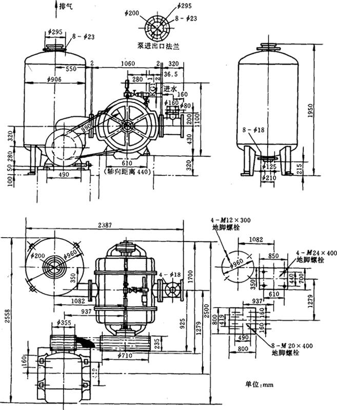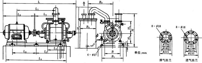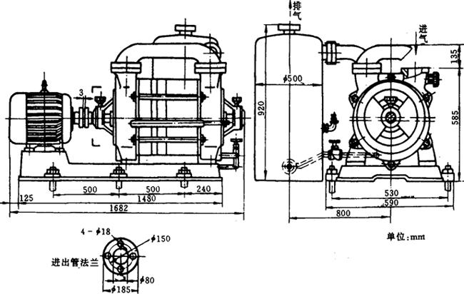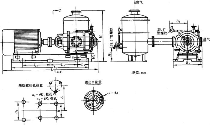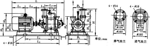 图9-9-22 2BE1型水环式真空泵外形尺寸图