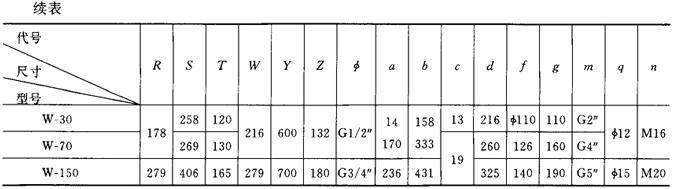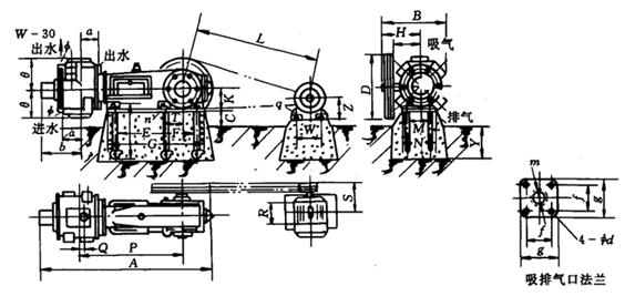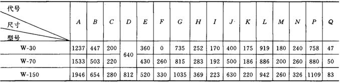 图9-9-25 W型往复式真空泵外形图 表9-9-32W型往复式真空泵结构尺寸表 单位:mm