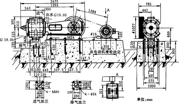 图9-9-19 SK系列泵(压缩机)外形和安装尺寸图 1′=2.54Cm