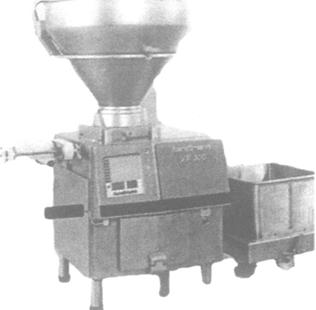| 释义 | 真空灌装机 真空灌装机是一种由料斗、肉泵(齿轮泵、叶片泵或双螺旋泵等)和真空系统所组成的连续式灌装机。该机能使用不同种类的肠衣,灌制不同规格的香肠。一般都带有自动扭结、定量灌制、自动上肠衣等装置,还可与自动打卡机、自动挂肠机、自动罐头充填机等设备配套使用。 真空系统是该类灌肠机最重要的部件,在蒸煮香肠的生产中,可以不采用真空斩拌机,但应尽可能使用真空灌肠机。真空进料可起到防止产品出泡、降低脂肪氧化、避免蛋白水解、延缓产品变质等作用。下面以HANDTMANN汉德曼VF300型叶片进肉泵真空灌装机为例做以下说明。 (一)主要结构 真空灌装机由锥形料斗、灌制嘴、叶片转子、定子、出料口、电节器、吸空筒状网套、电机及抽真空传动系统、机械传动系统等组成,机座为不锈钢材料制成。详见图3-4-7和图3-4-8。