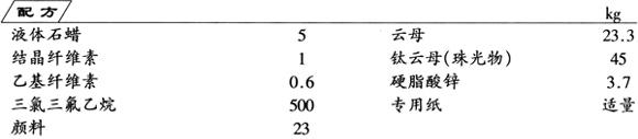 将液体石蜡、结晶纤维素、乙基纤维素和硬脂酸锌加入三氯三氟乙烷中,充分搅拌混合均匀,然后加入其余组分,混合均匀,制成浆状物,然后将其喷在载纸上,干燥,形成0.1mm厚眼影化妆纸。一次性涂搽眼睑,方便快速。