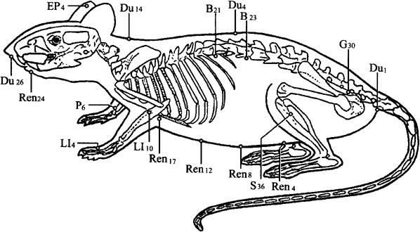 图12.6 小鼠的骨骼及实验穴位