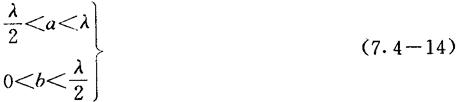 图7.4-3 矩形波导截止波长分布图 为了在矩形波导内只传播主模,抑制高次型波的存在,必须适当选择矩形波导横截面的尺寸,使之满足如下条件:
