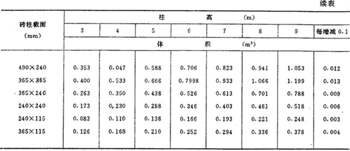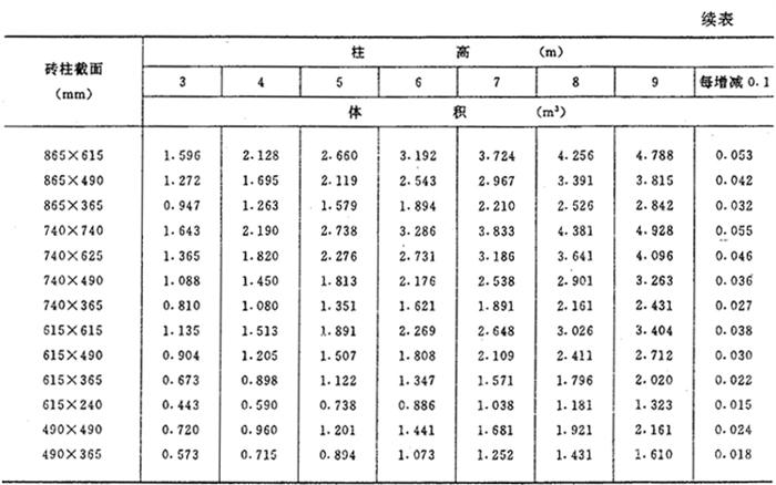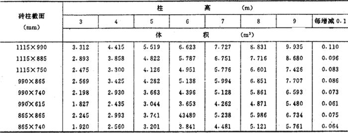 矩形砖柱体积表