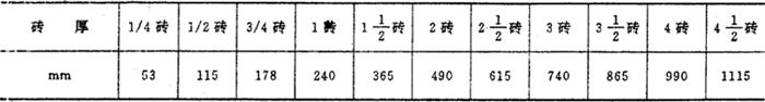 注:砌砖计算厚度对照表