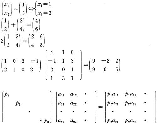 | 释义 | 矩阵运算 1.相等、加减、数乘 相等:两同阶矩阵 加减:若A、B同阶,则 A±B=(aij±bii) (2.3-2) 数乘:若α为一个数,则 αA=(αaij) (2.3-3) 2.乘法