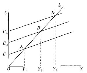 但在长期内,平均消费倾向(APCL)等于边际消费倾向(MPCL),即: APCL=MPCL 而且,MPCL>MPCS 〖参〗长期消费曲线 |