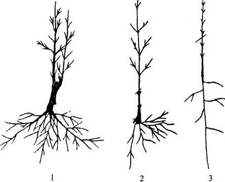 图7-1 根系类型 1.茎生根系 2.根蘖根系 3.实生根系 石榴的根系具有较强的再生能力,在受到创伤或被切断后,残留于土中的根段常能萌生新枝,形成独立的单株。所以,石榴用于山坡地保持水土,是极好的树种之一。在临潼产区群众有沿沟边、埂边、荒坡、滩地栽植的习惯,收到了很好的生态效益和经济效益。 石榴主干基部极易产生萌蘖,若采用分株育苗时,可在基部培上肥土,以增加生根,或曲枝埋土,进行压条繁殖。否则,宜尽早从萌生处将萌蘖疏除,切不可留下残桩,以免累年疏而不尽。 |