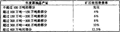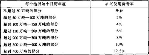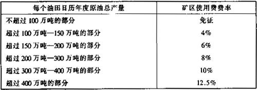 2.位于其他省、自治区、直辖市的中外合作油、气田适用 以下矿区使用费费率: (1)原油: 表16-5 陆上气田矿区使用费费率表