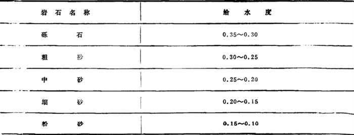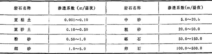 松散岩石的渗透系数如表3-1-6。 表3-1-6 松散岩石渗透系数参考值