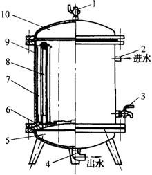 | 释义 | 砂棒过滤器 (一)特点与用途 砂棒过滤器的砂棒,是采用细微颗粒的硅藻土和骨灰等物质成型后经高温焙烧制成的。由于可燃性物质变成气体而逸散,在砂棒内形成2~4μm的微孔,当具有一定压力的水通过这些微孔时,水中存在的杂质即被阻挡在砂棒表面,从而将水净化。 目前国产过滤砂棒,其气孔率可在36%以上,吸水率约28%~40%。通过过滤可使水的浊度<5mg/L;大肠杆菌群<3个/L,细菌总数<100个/mL。因此,砂棒过滤器广泛用于饮料、制酒行业的阻菌、澄清、滤尘等粗过滤。 当水中杂质较多时,一般要先用混凝器、砂滤器等设备进行初步过滤,然后使这部分水通过砂棒过滤器。若采用自来水时,就可免去混凝、砂滤等工序,而直接进入砂棒过滤器。 (二)结构与工作原理 图4-12-1为常用101型砂棒过滤器的结构。