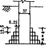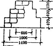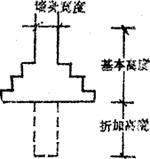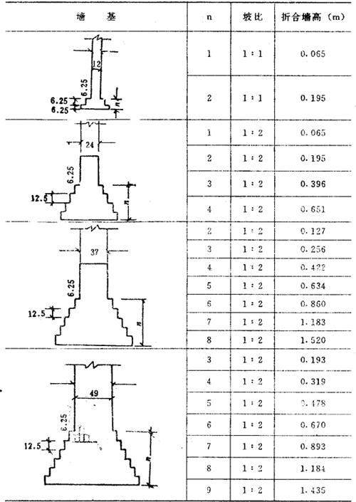 图2-17 [计算例] 如图2-17为370毫米墙身,大放脚四退收进系两皮一收,其计算方法如下: 解:①单位长方形面积: 表2-9 墙基折合墙高表