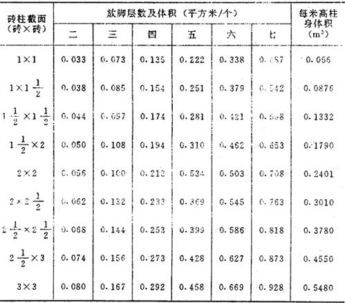 式中 n-边数;a-边长;r-内切圆半径。 表2-13 常用标准砖柱大放脚四周体积及柱身体积表