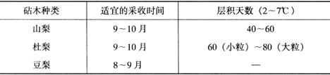 | 释义 | 砧木苗的培育 1.常用梨树砧木及其特点 (1)乔化砧 ①山梨 该梨为野生秋子梨,是我国北方常用的梨树乔化砧木,广泛分布于辽宁、吉林、黑龙江、内蒙古、河北、山西、陕西等地。 植株高大,叶片有光泽,枝条黄褐色,根系强大,须根少,生长旺盛,果实小,萼片宿存。抗寒性很强,能耐-52℃低温。寿命长,抗腐烂病、黑星病、抗旱力较强,适应性强。与秋子梨、白梨、砂梨的嫁接亲和力强,与西洋梨品种嫁接亲和力弱,与西洋梨某些品种嫁接后易患果实铁头病。 ②杜梨 也是我国北方常用的梨树乔化砧木。广泛分布于辽宁、内蒙古、河北、河南、山东、山西、陕西、甘肃等地。以河南、山东、陕西等省为常见。 根系强大,须根多,枝条开张下垂,枝上具刺。叶片为长卵圆形,果实小,圆球形,褐色。萼片脱落,耐旱,耐湿,抗盐碱,与多种梨品种嫁接亲和力好,但嫁接洋梨时,虽易愈合成活,但果实易患铁头病。其上嫁接的梨品种结果早、丰产、寿命长。杜梨的抗寒性也比较强,抗腐烂病能力中等。 ③褐梨 分布于山东、山西、河北等省。东北山地也有应用。在山东地区又叫棠杜梨,多用于山区。适应性强、抗旱、耐涝,与栽培品种嫁接后生长旺盛,产量也高,但结果较晚, ④豆梨 广泛分布于湖南、河南、江苏、安徽、浙江、江西、福建、贵州、云南、山东、四川等地。在山东某些地方也称其为杜梨。实生苗初期生长比较慢。根系强大,耐热。抗涝、抗旱、抗腐烂病能力较强,但抗寒性较差。是砂梨系统梨品种的优良砧木,与西洋梨品种的嫁接亲和力也比较强。 ⑤木梨与川梨 木梨广泛分布于甘肃、青海、宁夏、新疆等地。川梨广泛分布于四川、云南、贵州等省。大树均生根蘖,对腐烂病抗性较弱,与各系统梨嫁接亲和力均好,生长健壮,结果良好。木梨的抗旱性好,抗赤星病能力特强,根系强大,寿命长。 此外,麻梨为西北地区应用最多的耐寒、耐旱的梨树砧木。 (2)矮化砧 梨树也有矮化砧木。目前,普遍认为对梨有致矮作用的砧木是榅桲,最常用的有榅桲A、B、C三个类型。A型的各品种嫁接亲和力较强,扦插也易发根,但抗寒力较差,且不耐盐碱。C型矮化效果最强。梨的矮化砧,目前国内还没有用于大面积生产,仍处于试栽阶段。云南榅桲对中国梨品种有明显的矮化作用,也是西洋梨品种常用的矮化砧,其树冠矮小,结果早,但抗寒力较差,不耐盐碱,固地性差、寿命短。 中国果树所在梨矮化砧选育方面作了较多的工作,PDR54是中国果树所从香水梨与巴梨杂交后代中选出的极矮化砧木,以杜梨作基砧,PDR54作中间砧时,嫁接早酥梨,5年生树高为119.3厘米,相当于乔化砧的35.4%。S2、S3、S5是中国农业科学院果树研究所从锦香梨的自然实生苗中选出的矮化和半矮化砧木,用山梨做基砧,S2、S3作中间砧嫁接砀山酥梨,5年生树高分别为144厘米和114.5厘米,仅为乔化砧对照树的76%和53.9%。 上述矮砧(PDR54,S2、S3、S5)与早酥梨、砀山酥梨、锦丰梨、鸭梨、雪花梨、金花梨等嫁接亲和性都好,而且能早结果丰产,已在全国十几个省、直辖市应用试栽。 2.实生播种培育砧木苗 生产上梨树育苗普遍采用实生播种的方法繁育砧木苗。砧木苗的繁育过程与苹果基本相同。现将其与苹果砧木苗繁育过程中的不同之处阐述如下:各种梨砧木种子的采收适宜时间、层积天数见表7-3。各种梨砧木种子的播种量、千克种子粒数以及单位果实的出种率等见表7-4。 表7-3 梨砧木种子采收时间、层积日数表