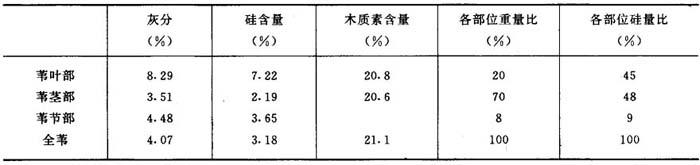 | 释义 | 硅在细胞组织中的分布 非木材植物纤维原料的灰分中硅的含量较高,在化学药品回收过程中造成硅干扰。特别是禾本科植物灰分含量(主要是SiO2)很高,其中以稻草中SiO2含量最高。因此,在草类制浆废液碱回收中,除硅是一个重要问题。研究硅在细胞组织中的分布状况具有重要意义。 轻工业部造纸研究所采用扫描电镜——X射线能谱仪研究了芦苇细胞组织中硅的分布情况。芦苇不同部位的灰分和硅含量差别很大。表2-7-10为天津毛芦不同部位的硅含量。值得注意的是苇叶部的硅占总硅量的百分比是相当可观的。 表2-7-10 天津毛苇不同部位的硅含量