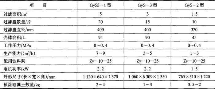 硅藻土过滤机主要技术参数见表4-2-4。