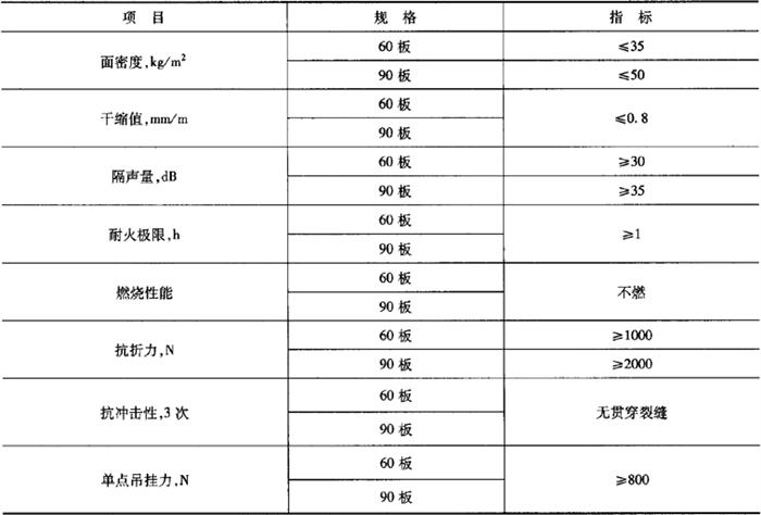 (3)物理力学性能(表3-97) 表3-97 轻质隔墙板的物理力学性能