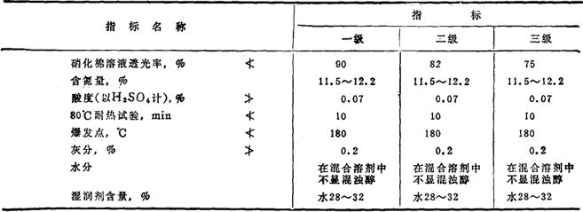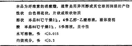 注:水分32~42%,本品无毒,但易爆,生产设备必须防爆. 化妆品用硝化棉质量规格(JSCⅠ-Ⅱ)