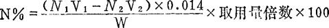 式中:N1V1--硫酸标准液的当量浓度及毫升数; N2V2--氢氧化钠标准液的当量浓度及毫升数; 取用量倍数-- 其它符号同前。 (五)注释 因溶液反应中产生的氰氨酸的pH也接近4.4,故此终点时存在的氰氨酸不消耗氢氧化钠。 |