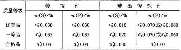 铸钢件、球墨铸铁件的硫、磷含量分等应符合表5-131的规定.